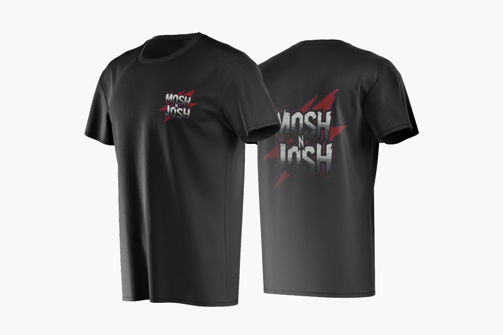 The Mosh n Josh T-Shirtย with Glittery Logoย Available in Various sizes and Coloursย ย These are Hand Printed by usย
